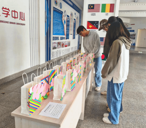 2026年4月22日,国际语言文化实践教学中心在地球村一楼大厅举办了木槿花包装袋作品展,来自各学院各专业的20名学生参展。展览集中展示了学生们在“韩国传统文化体验”课程中的优秀手工作品,通过一枚枚精巧的包装袋,生动演绎了韩国文化符号与现代创意设计的完美交融。